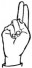 На ћирилици написано БУДИМИР РАЈКОВИЋ састоји се из 15 слова [?]. Исписано ћириличном једноручном азбуком за глувонеме: